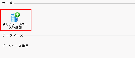 データベースを作成するここでは、データベースとデータベースユーザの新規作成の手順を説明します。 1.データベースの新規作成データベースを新規作成するためには、まずコントロールパネルの「データベース」アイコンをクリックします。