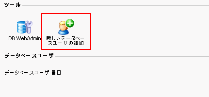 2.データベースユーザの新規作成データベースを使用するためには、そのデータベースにデータベースユーザを追加しておく必要があります。 データベースユーザを新規作成するには、まず「新しいデータベースユーザの追加」アイコンをクリックします。